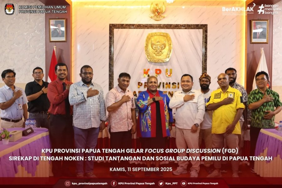 Komisi Pemilihan Umum (KPU) Provinsi Papua Tengah menyelenggarakan Focus Group Discussion (FGD) bertema “Sirekap di Tengah Noken: Studi Tantangan dan Sosial Budaya Pemilu di Papua Tengah”, pada Kamis (11/09/2025) bertempat di Aula Kantor KPU Papua Tengah dan melalui Zoom Meeting. Kegiatan ini dibuka oleh Ketua KPU Papua Tengah, Jennifer Darling Tabuni, bersama jajaran anggota komisioner serta dihadiri Kabag Teknis dan Hukum. FGD menghadirkan narasumber dari berbagai bidang, di antaranya Petrus Tekege (Universitas Satya Wiyata Mandala), Dio BP Ginting (BPS Nabire), H. Rumyanan (Diskominfo Provinsi Papua Tengah), dan Theodorus Kossay (praktisi). Kehadiran perwakilan partai politik semakin memperkaya jalannya diskusi dengan berbagai sudut pandang yang konstruktif. Kegiatan ini bertujuan untuk mengidentifikasi tantangan implementasi Sistem Informasi Rekapitulasi Elektronik (Sirekap) di Papua Tengah, sekaligus menggali aspek sosial budaya yang khas, khususnya praktik noken dalam pemilu. Diskusi juga menekankan pentingnya adaptasi teknologi dengan kondisi geografis dan budaya lokal, serta peran partai politik dan media dalam meningkatkan pemahaman publik. Melalui FGD ini, KPU Papua Tengah akan menyusun sebuah riset ilmiah yang diharapkan dapat menjadi rekomendasi strategis untuk mendukung pemilu yang lebih transparan, inklusif, dan partisipatif di Tanah Papua. (ade/fjr) ....