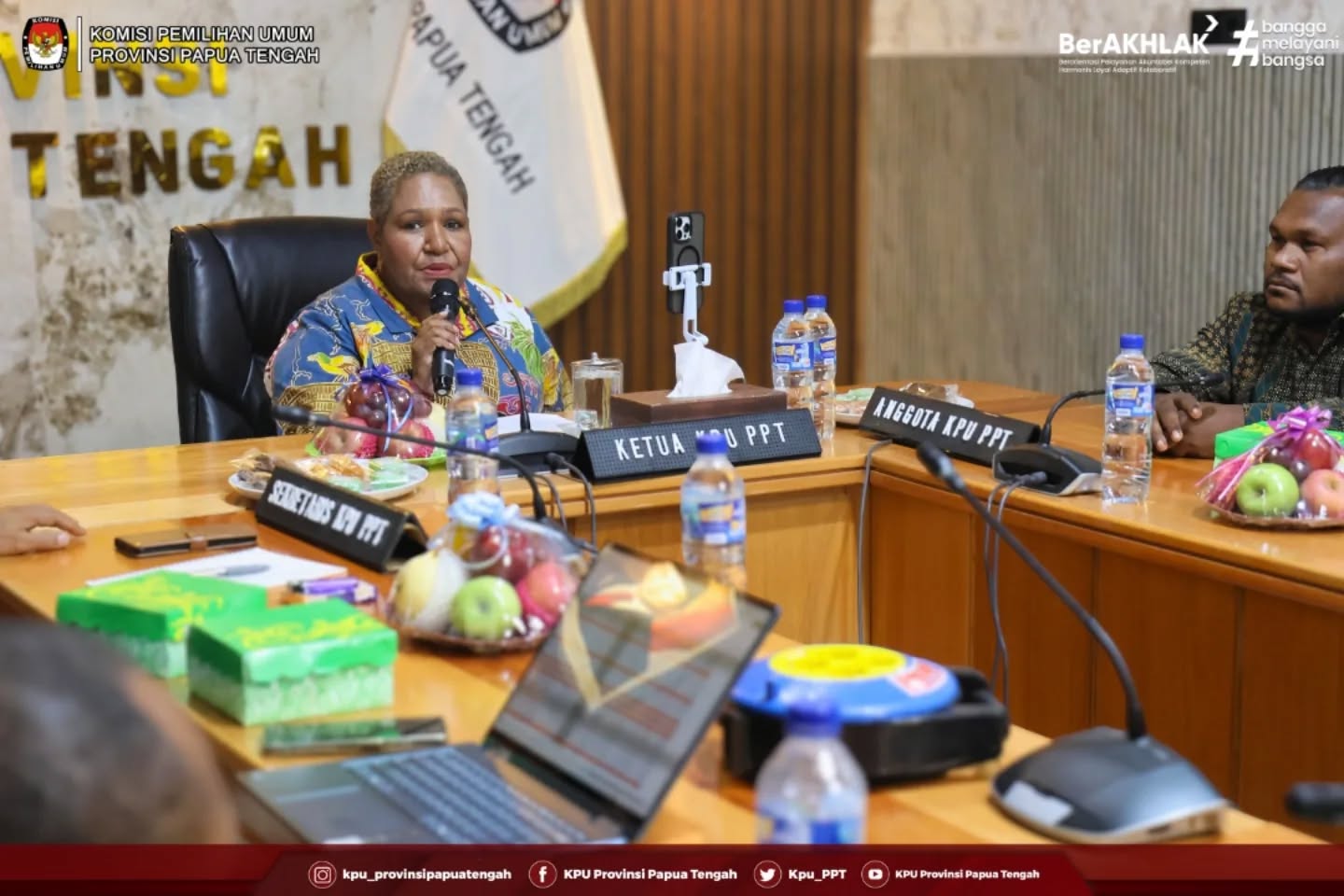 KPU Provinsi Papua Tengah melaksanakan Rapat Koordinasi Penyelesaian Data Ganda dalam rangka Pemutakhiran Data Pemilih Berkelanjutan pada Rabu (10/09/2025). Kegiatan ini berlangsung secara luring di Aula Kantor KPU Provinsi Papua Tengah dan daring melalui Zoom Meeting.