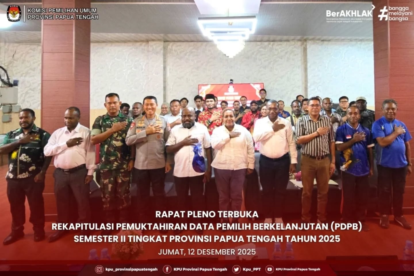 KPU Provinsi Papua Tengah menggelar Rapat Pleno Rekapitulasi Pemutakhiran Data Pemilih Berkelanjutan (PDPB) Semester II Tahun 2025 Tingkat Provinsi Papua Tengah, bertempat di aula Kantor KPU Provinsi Papua Tengah pada Jumat (12/12/2025).